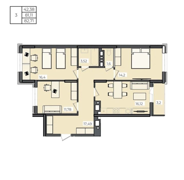 Площадь от 82 м2